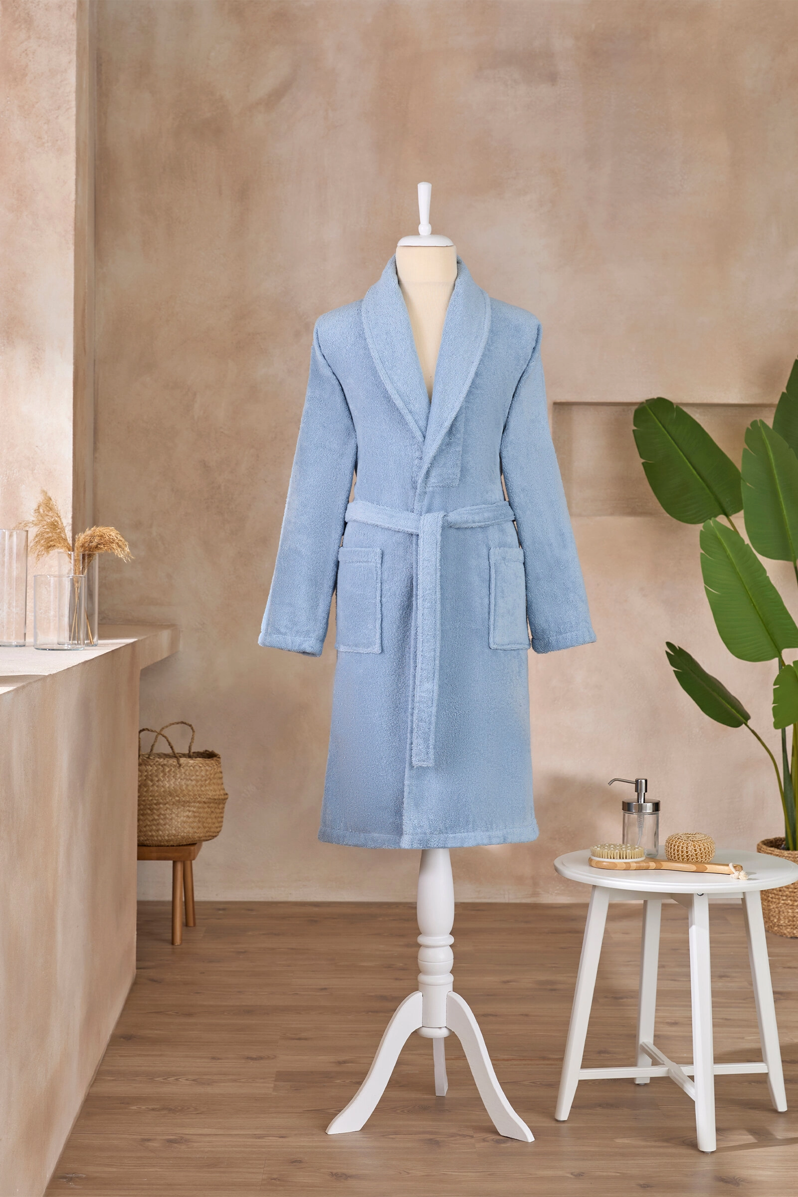 Muški bademantil sa kapuljačom – Classic, plavi (XXL)